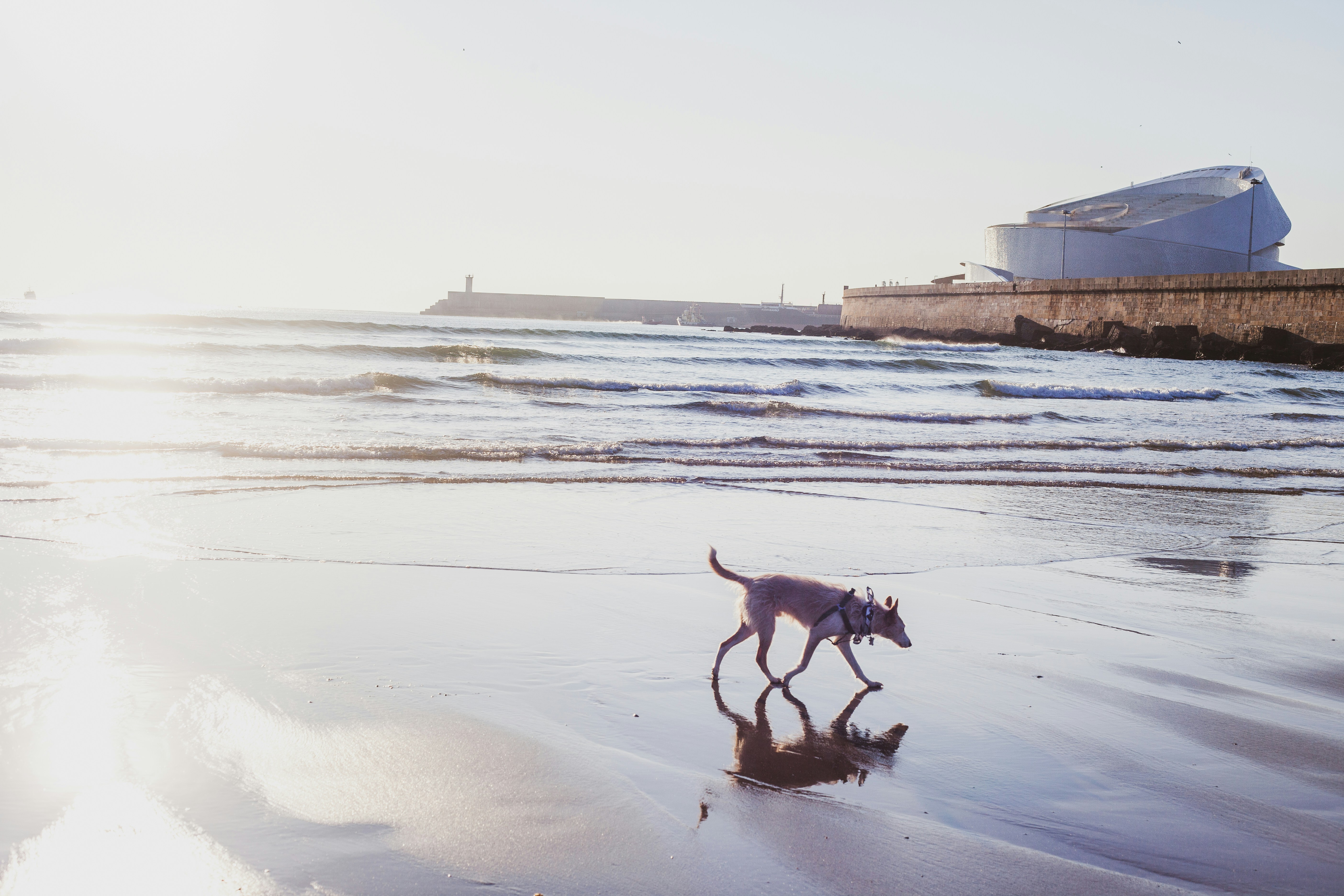 Hazel, Stella, and Snowden spent a sunny day at the beach, chasing waves and making paw prints in the sand.